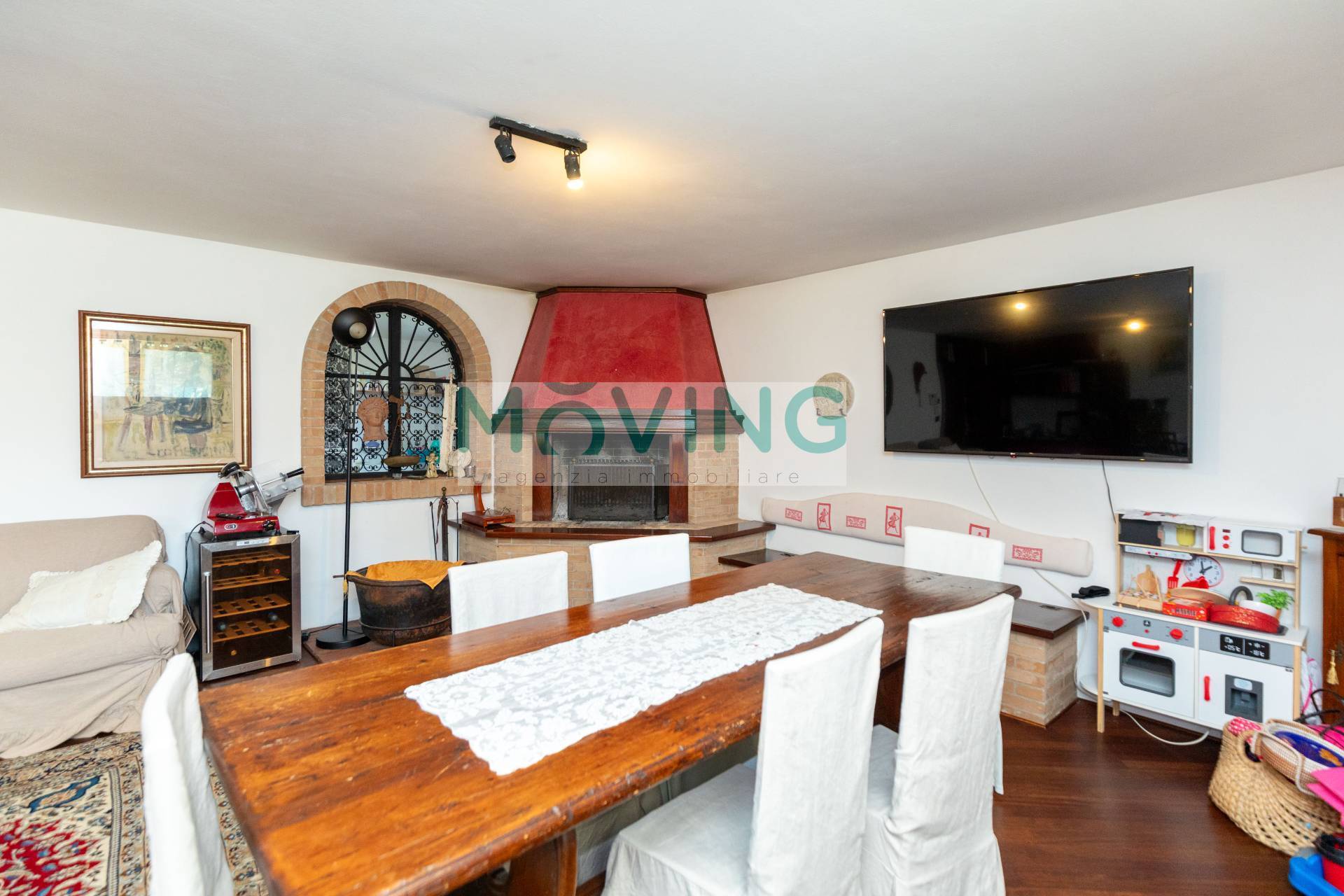 L’abitazione si apre su un ampio soggiorno con caminetto a legna, cuore caldo e accogliente della casa, collegato a una cucina separata e abitabile, perfetta per condividere la quotidianità tra chiacchiere e profumo di buono. La zona notte offre due camere matrimoniali con accesso al terrazzo, uno studio (dove volendo si può ricavare la terza camera) e due bagni finestrati, uno con vasca e uno con doccia.