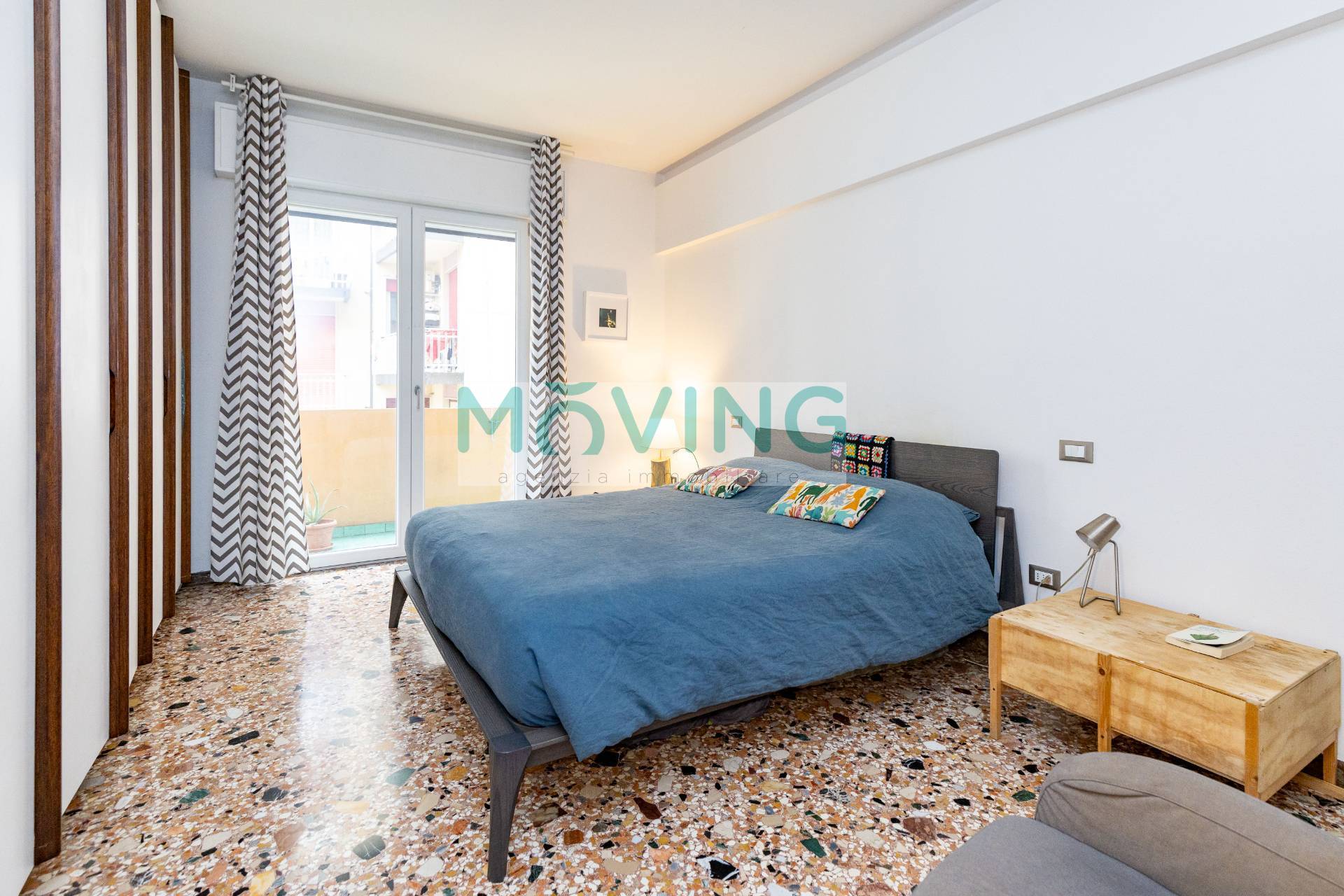Internamente è composto da ingresso, cucina abitabile con poggiolo loggiato, soggiorno con lungo poggiolo comunicante anche con la camera matrimoniale, camera doppia, bagno e comodo ripostiglio.