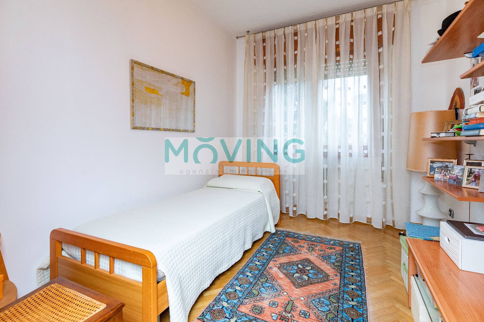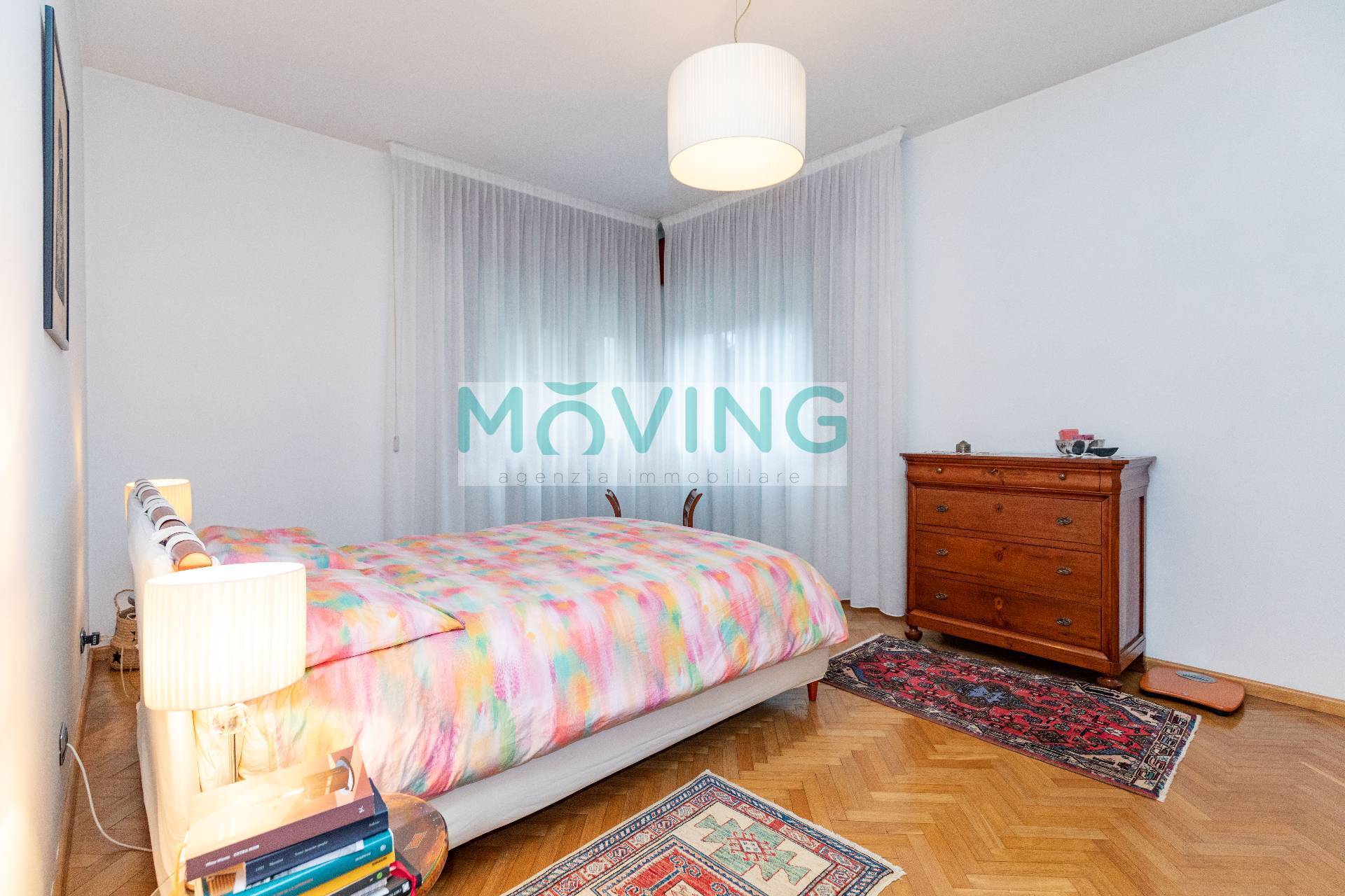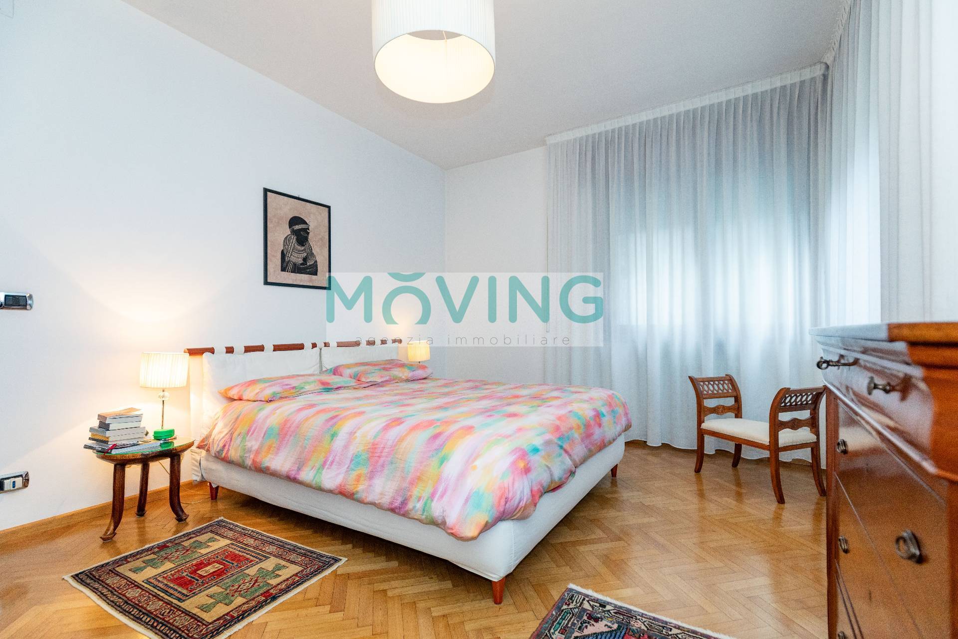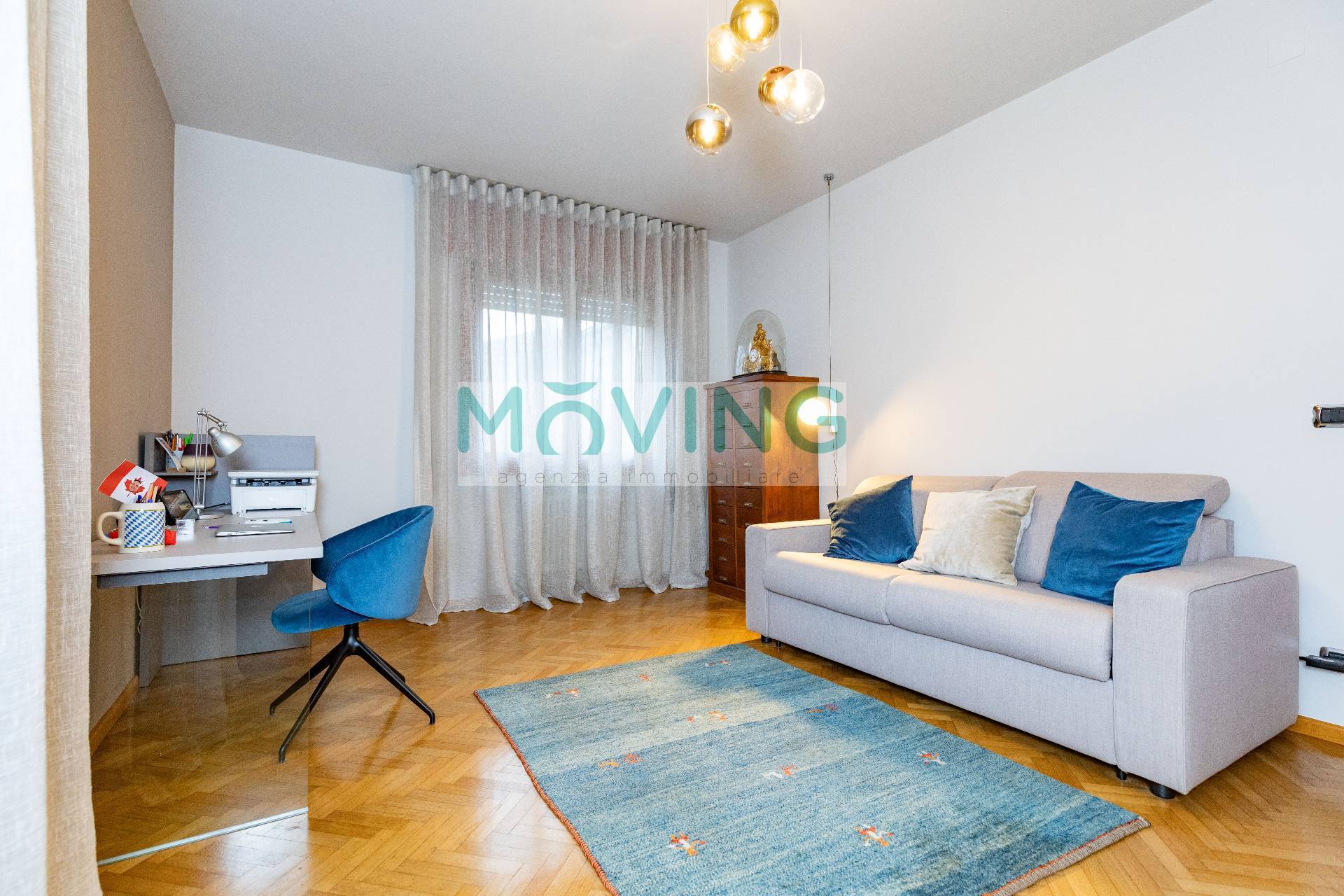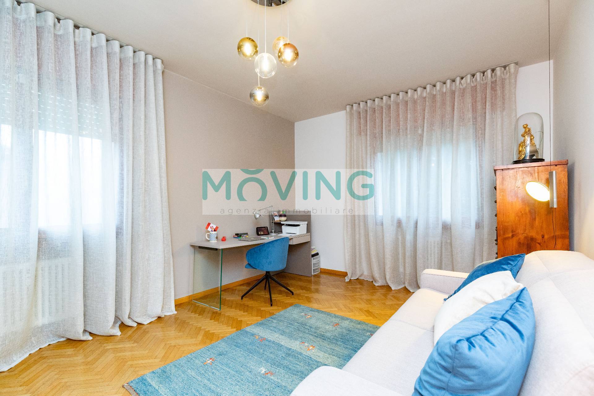 La zona notte, ben separata, regala privacy e tranquillità: due camere matrimoniali grandi e accoglienti, una terza camera o studio, un disimpegno impreziosito da una libreria su misura che racconta attenzione al dettaglio, doppi servizi finestrati e un utile ripostiglio.