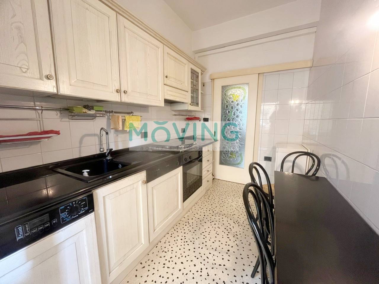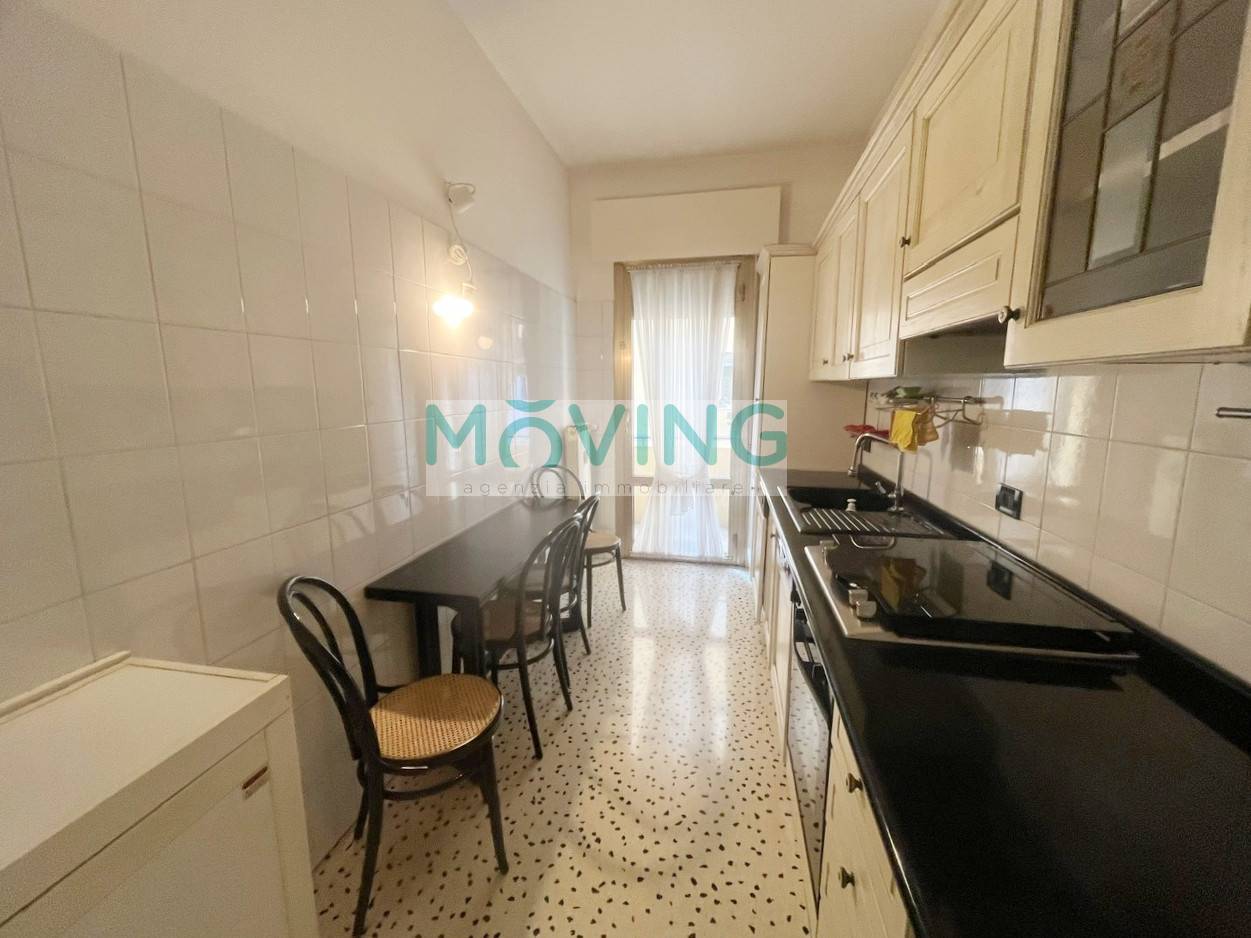 La cucina è separata con accesso ad un balcone.